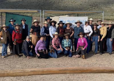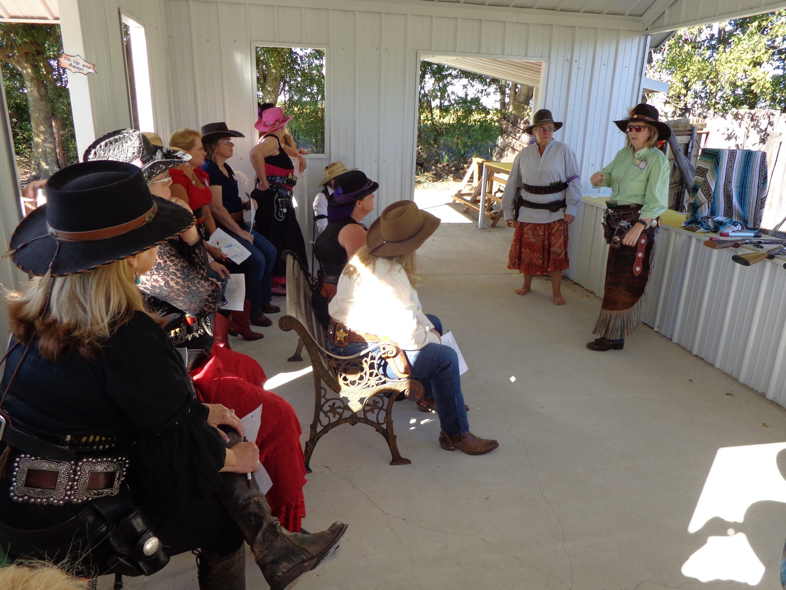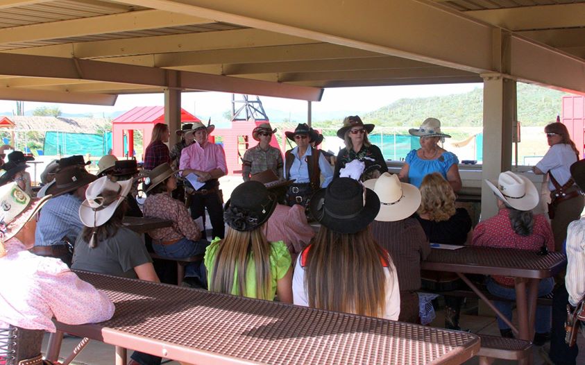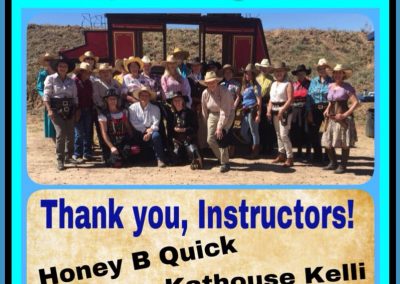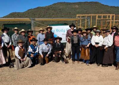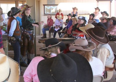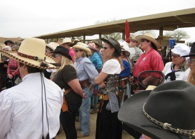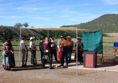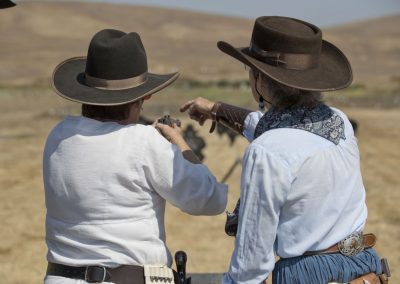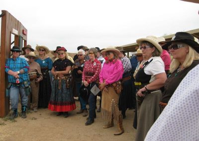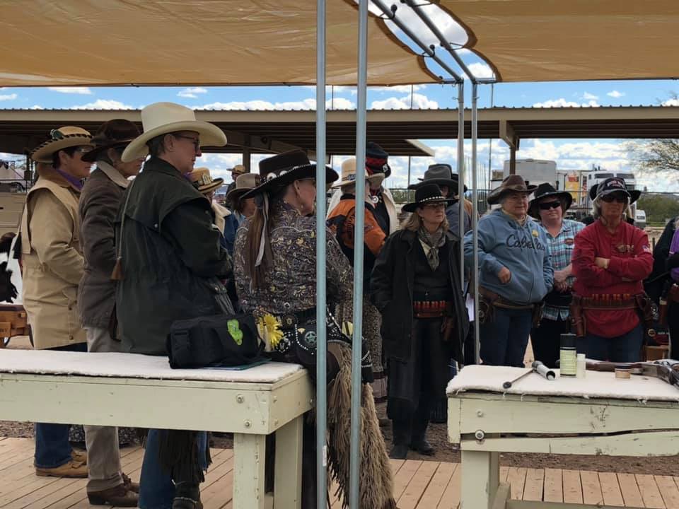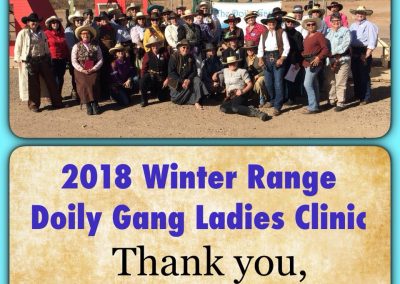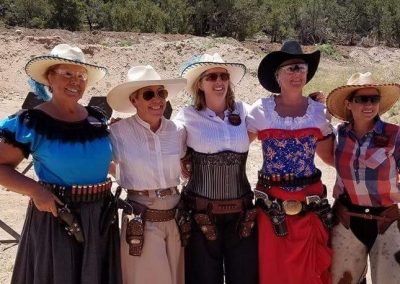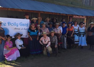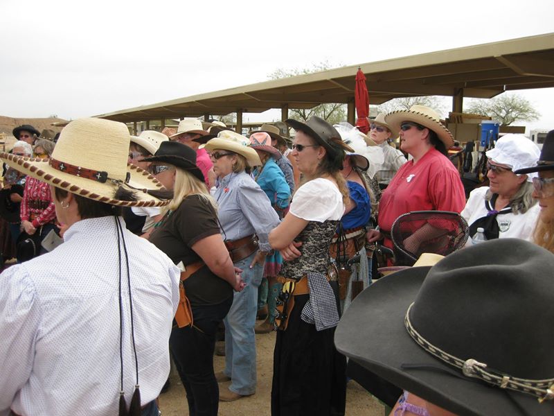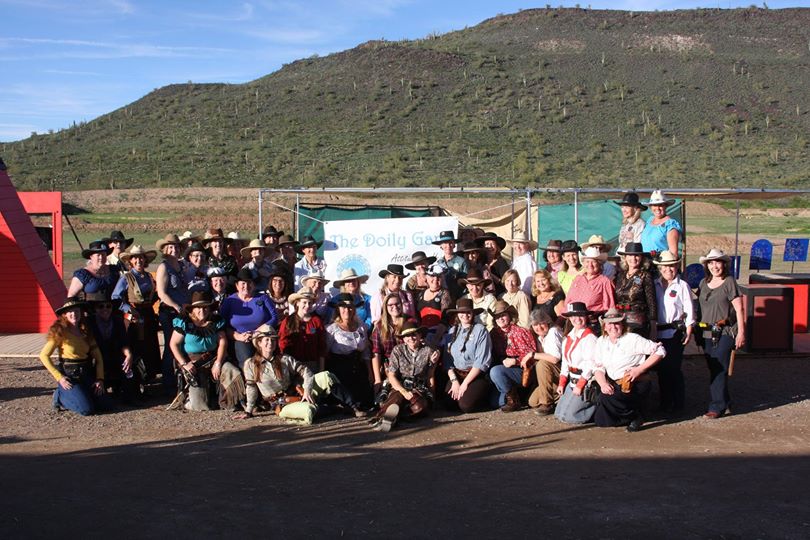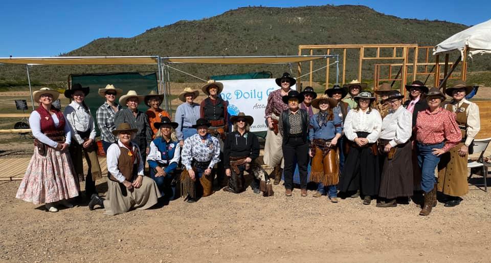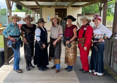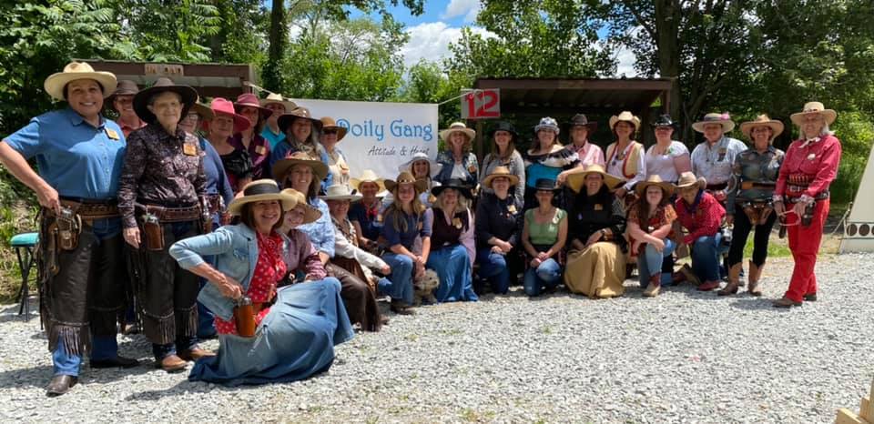 The Doily Gang hosted ladies’ clinics with the purpose of helping cowgirls improve their game. These clinics were not an introduction to Cowboy Action Shooting™, but instructors provided tips and techniques on shooting stance, drawing pistols, levering rifle, loading/shucking the shotgun, staging guns, transitions, practice tips, the mental game, etc.