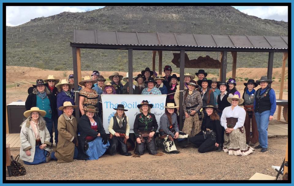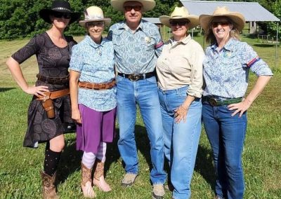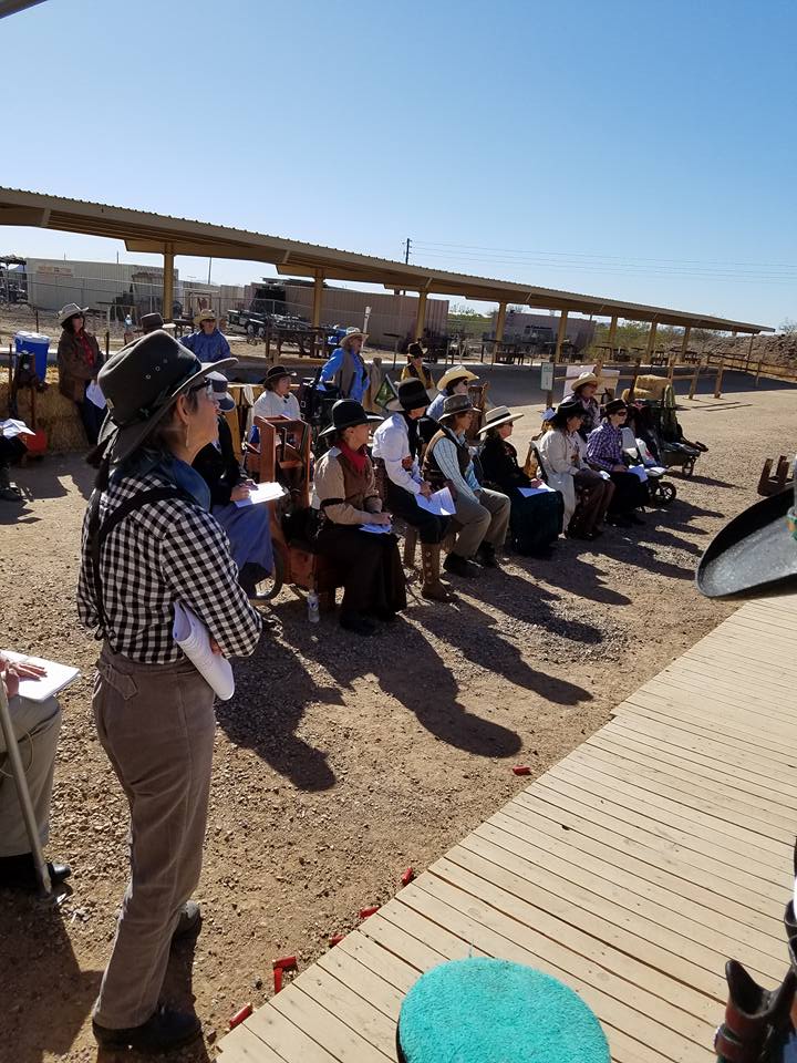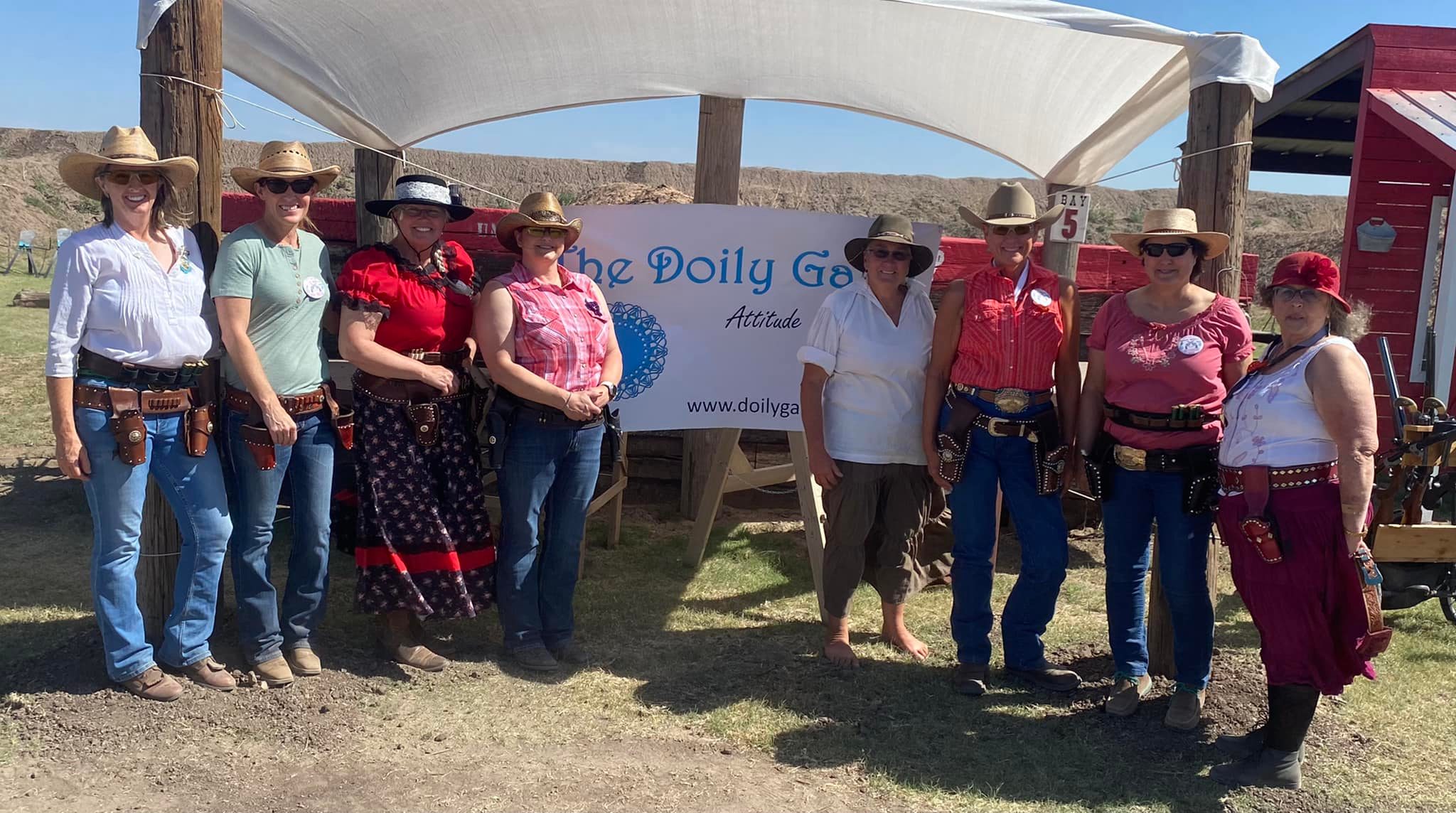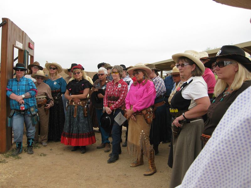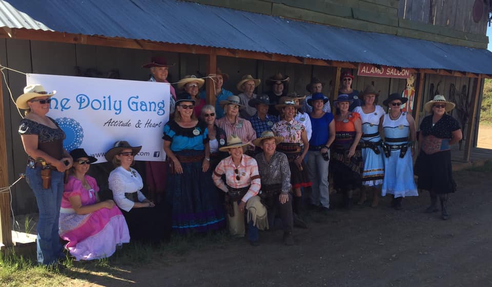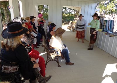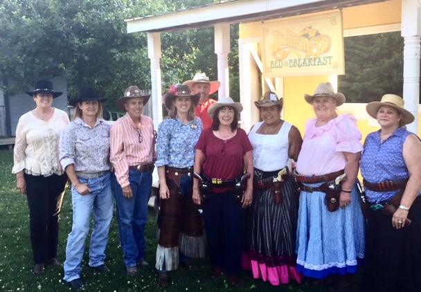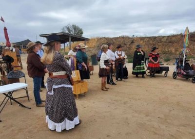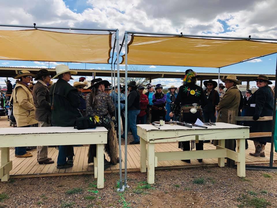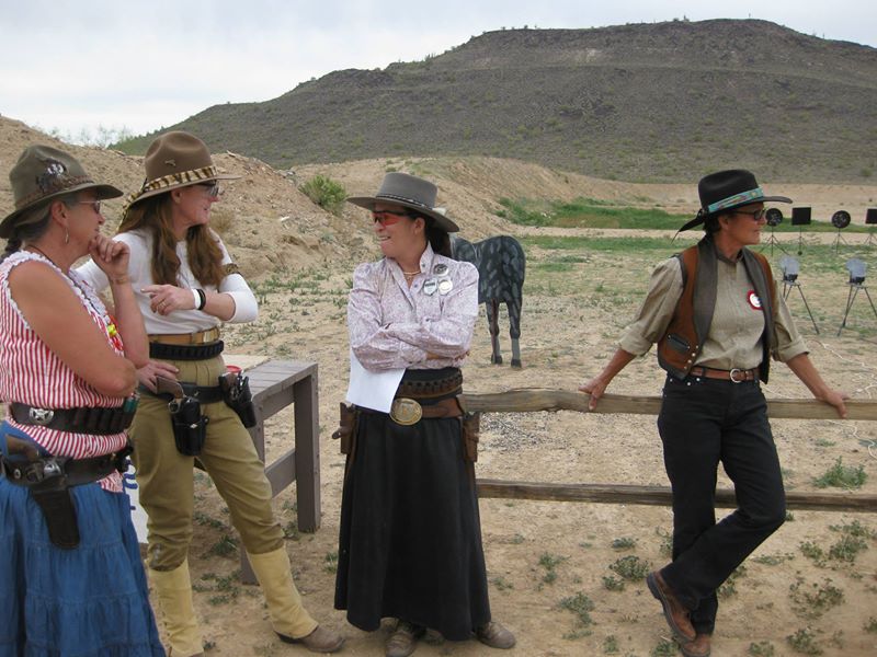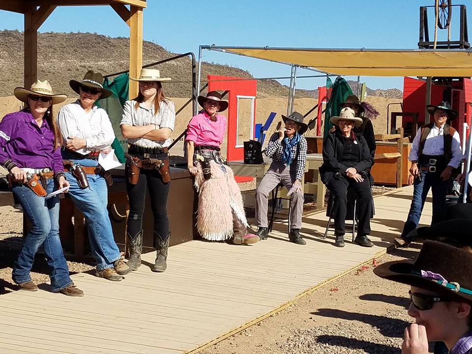 The Doily Gang hosted ladies’ clinics with the purpose of helping cowgirls improve their game. These clinics were not an introduction to Cowboy Action Shooting™, but instructors provided tips and techniques on shooting stance, drawing pistols, levering rifle, loading/shucking the shotgun, staging guns, transitions, practice tips, the mental game, etc.