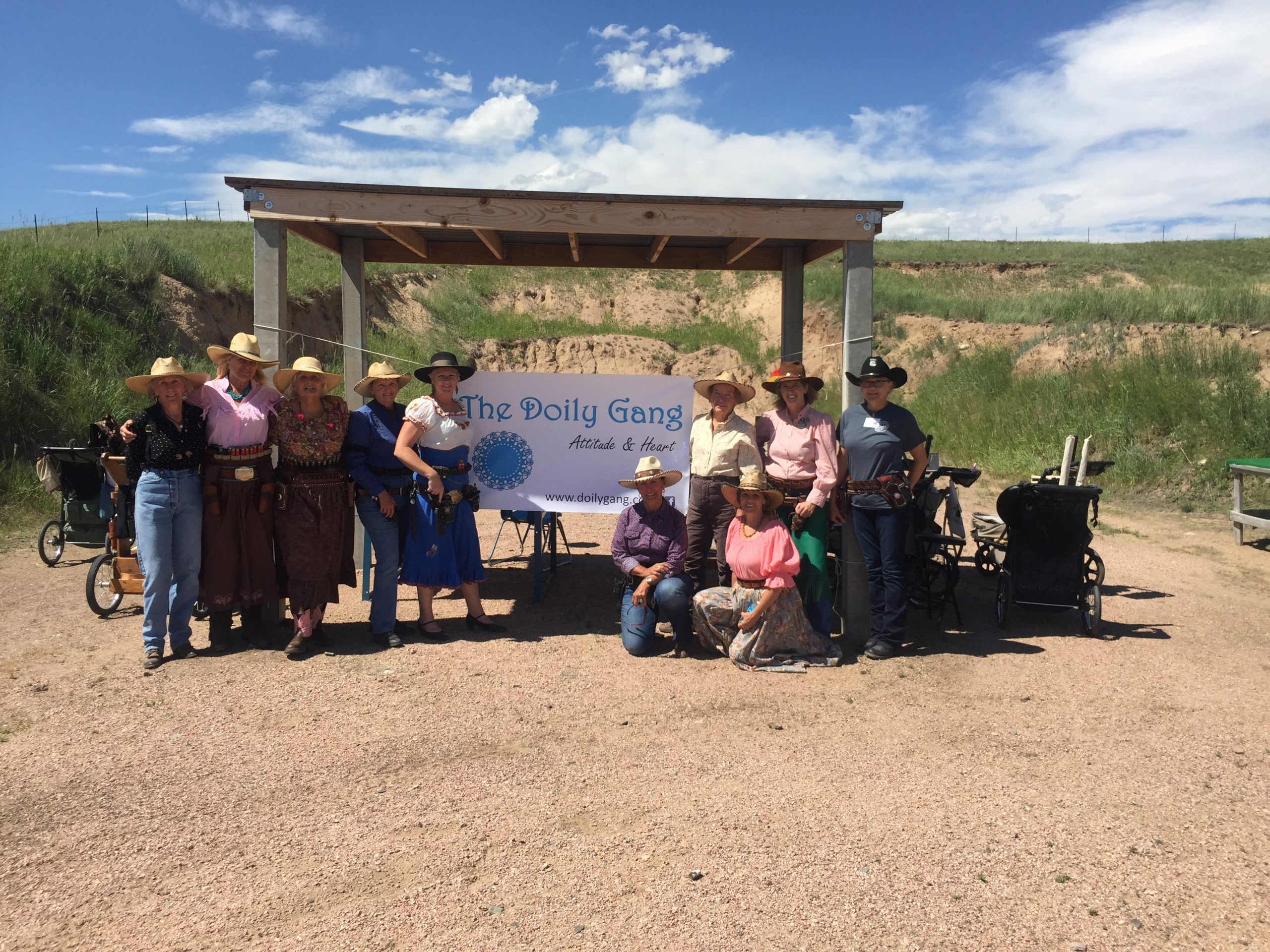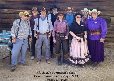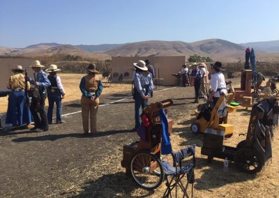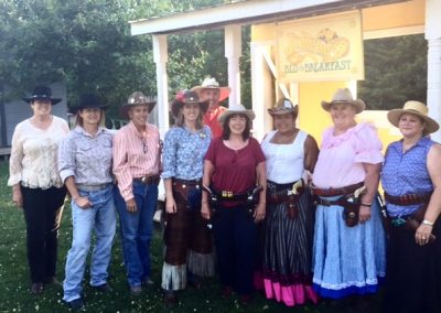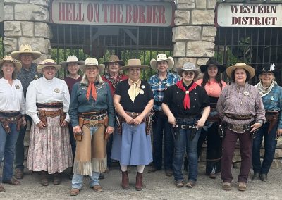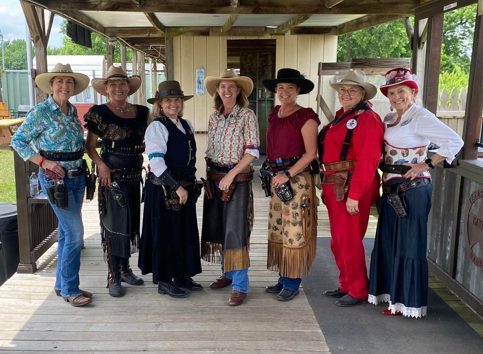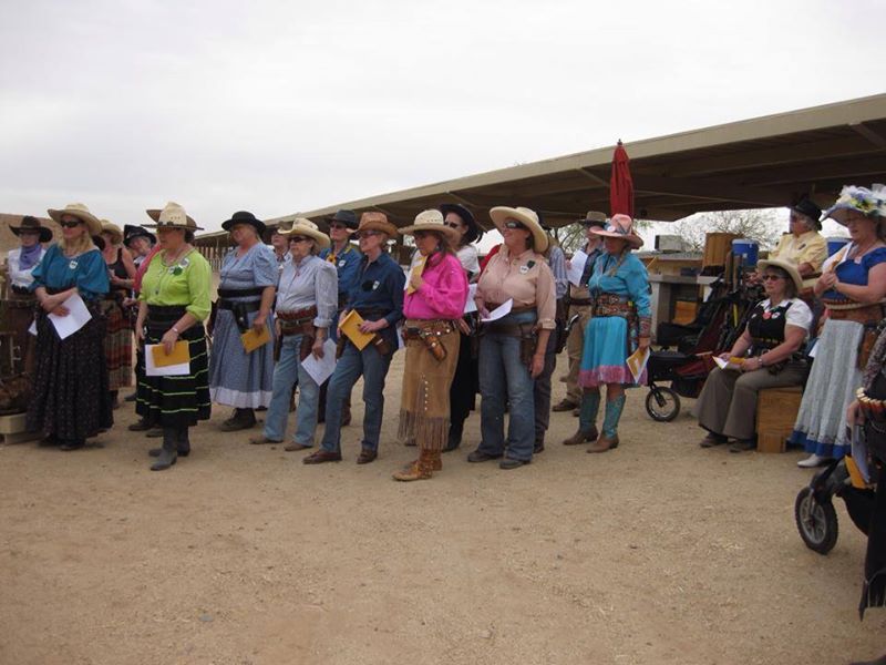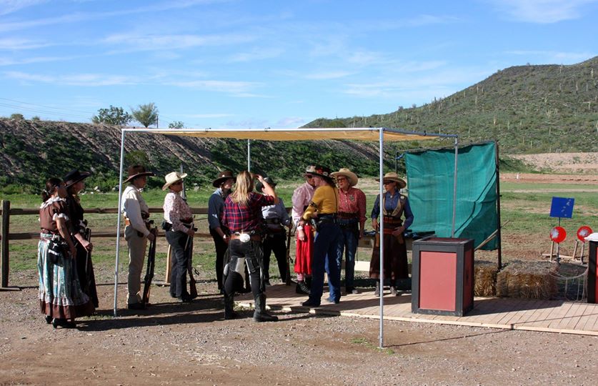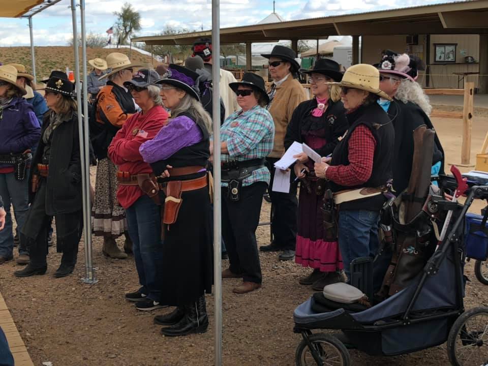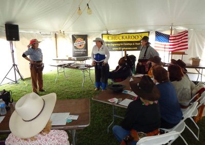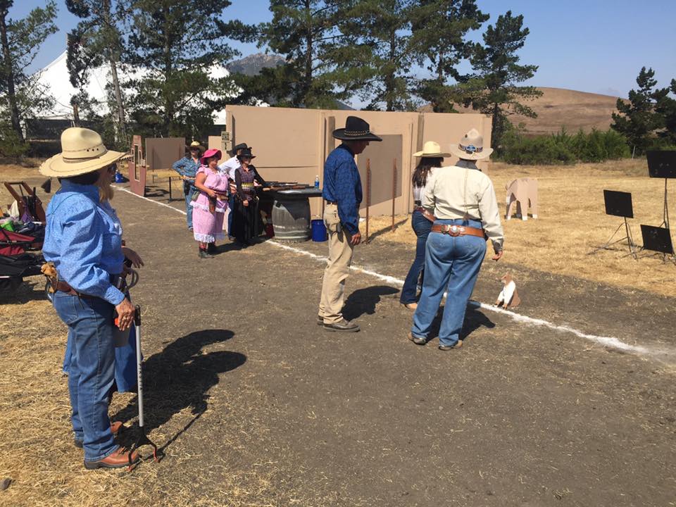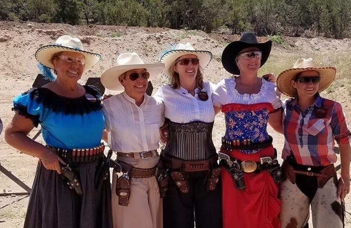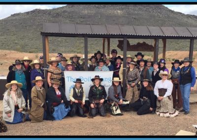 The Doily Gang hosted ladies’ clinics with the purpose of helping cowgirls improve their game. These clinics were not an introduction to Cowboy Action Shooting™, but instructors provided tips and techniques on shooting stance, drawing pistols, levering rifle, loading/shucking the shotgun, staging guns, transitions, practice tips, the mental game, etc.