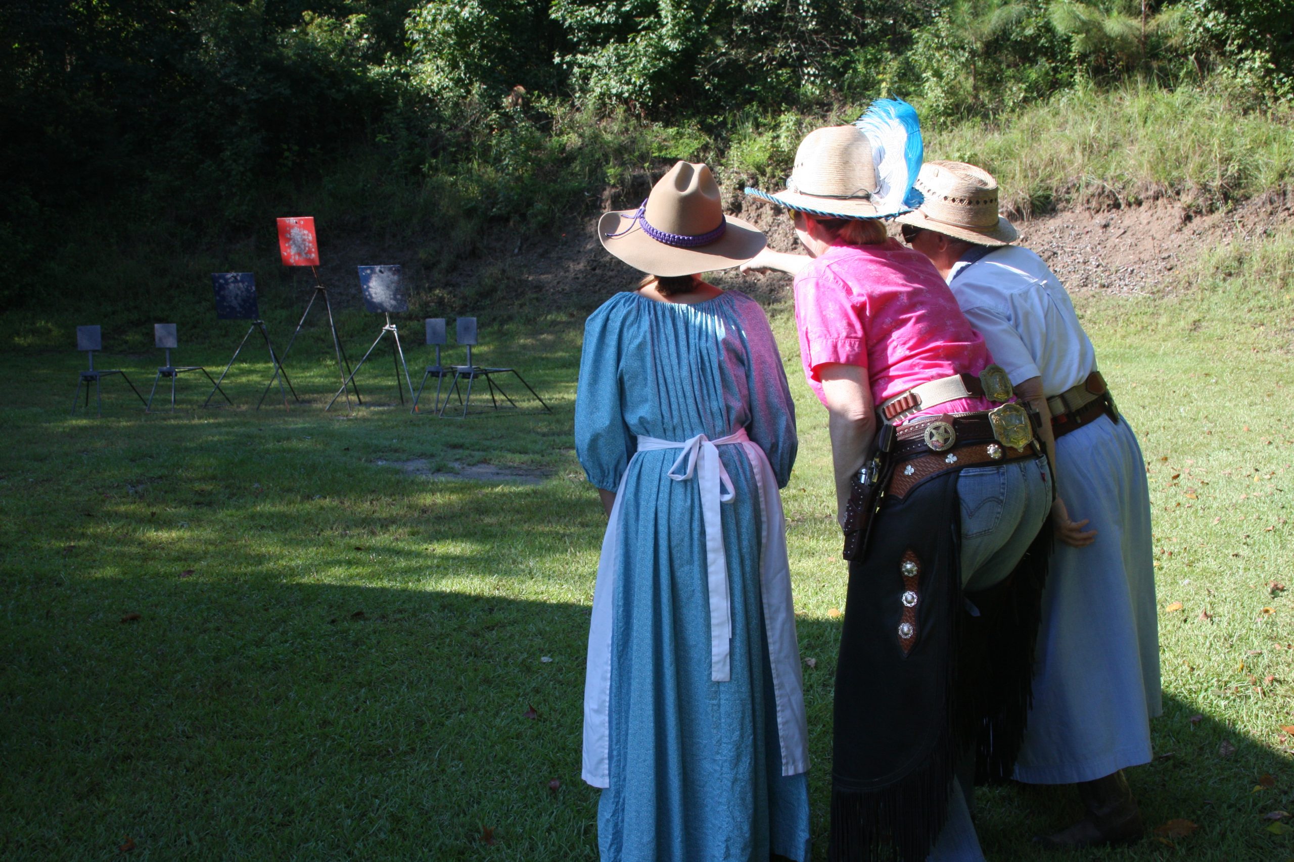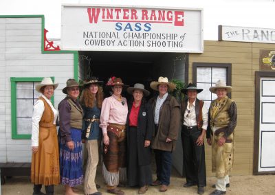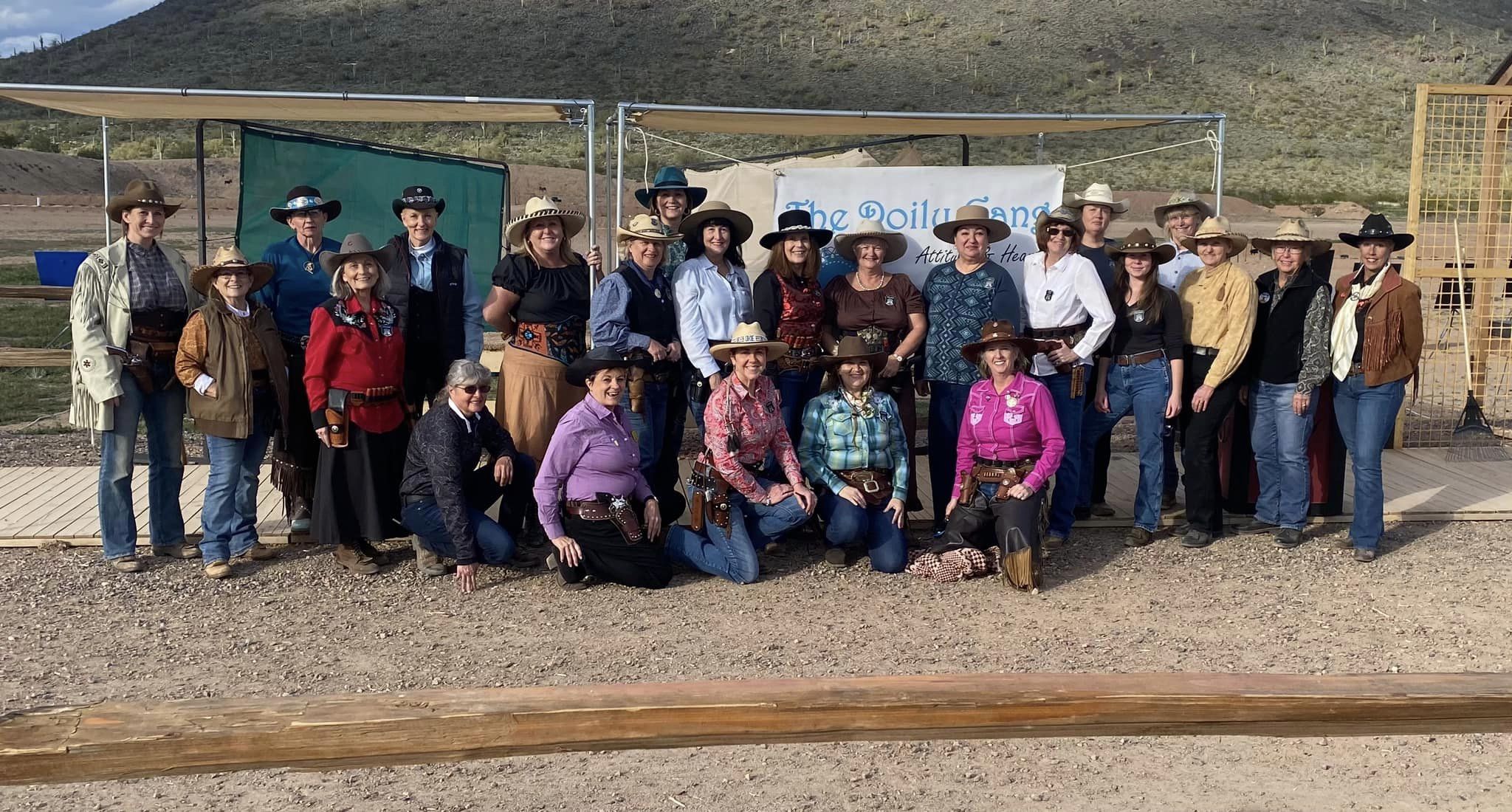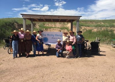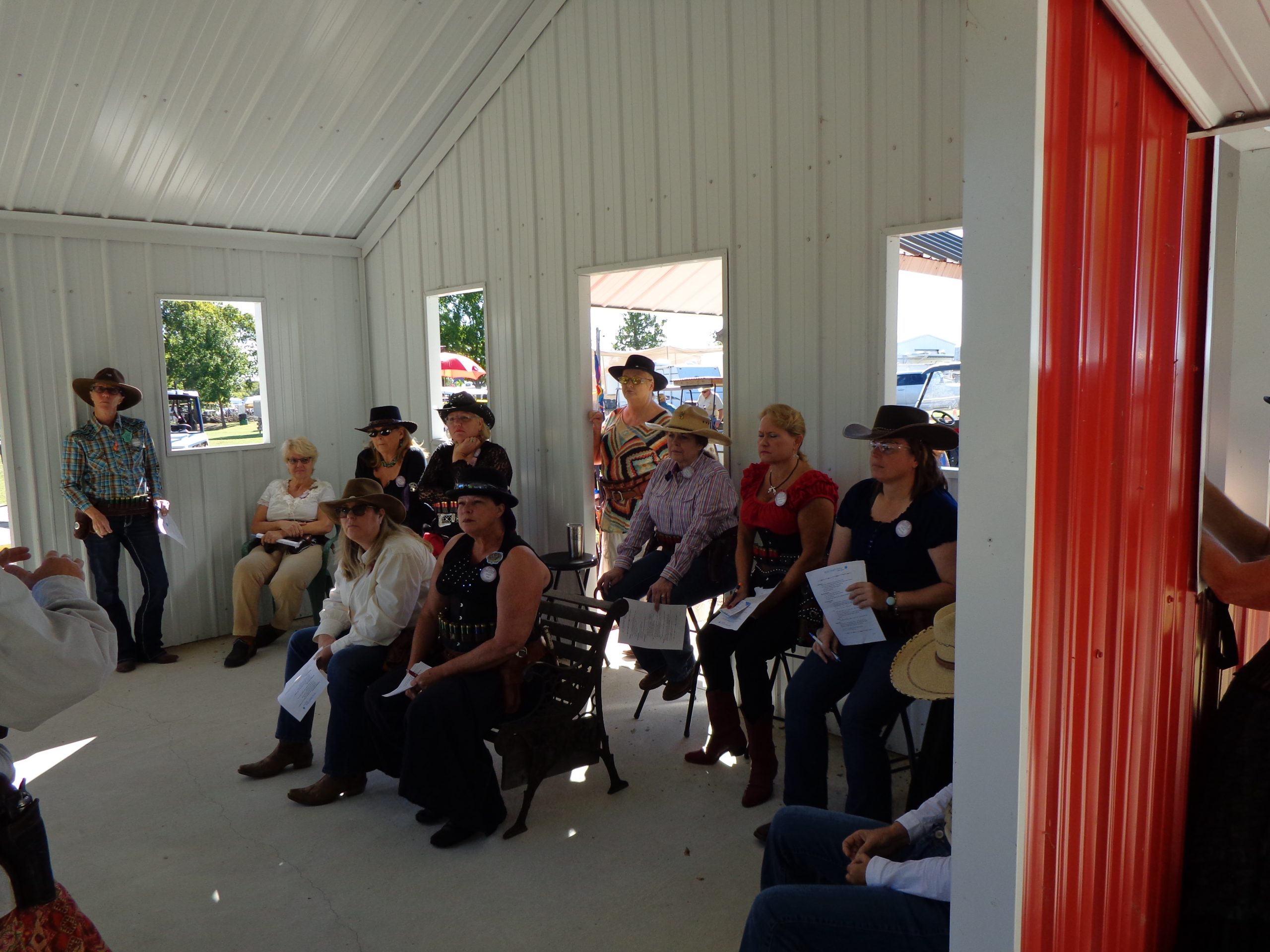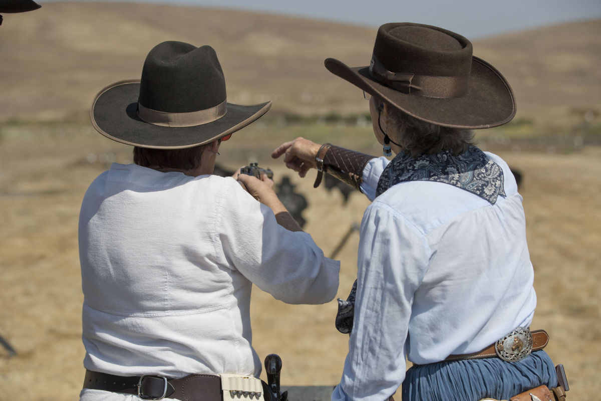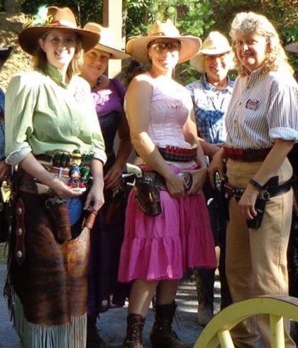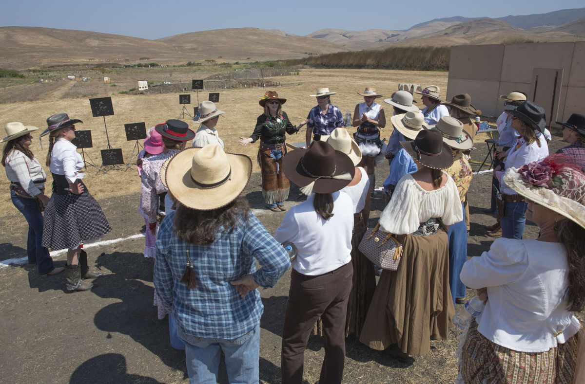 The Doily Gang hosted ladies’ clinics with the purpose of helping cowgirls improve their game. These clinics were not an introduction to Cowboy Action Shooting™, but instructors provided tips and techniques on shooting stance, drawing pistols, levering rifle, loading/shucking the shotgun, staging guns, transitions, practice tips, the mental game, etc.