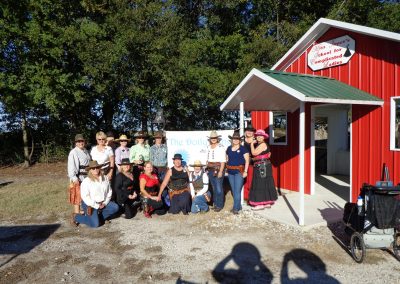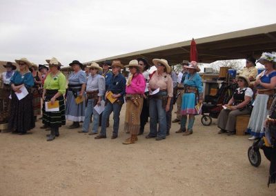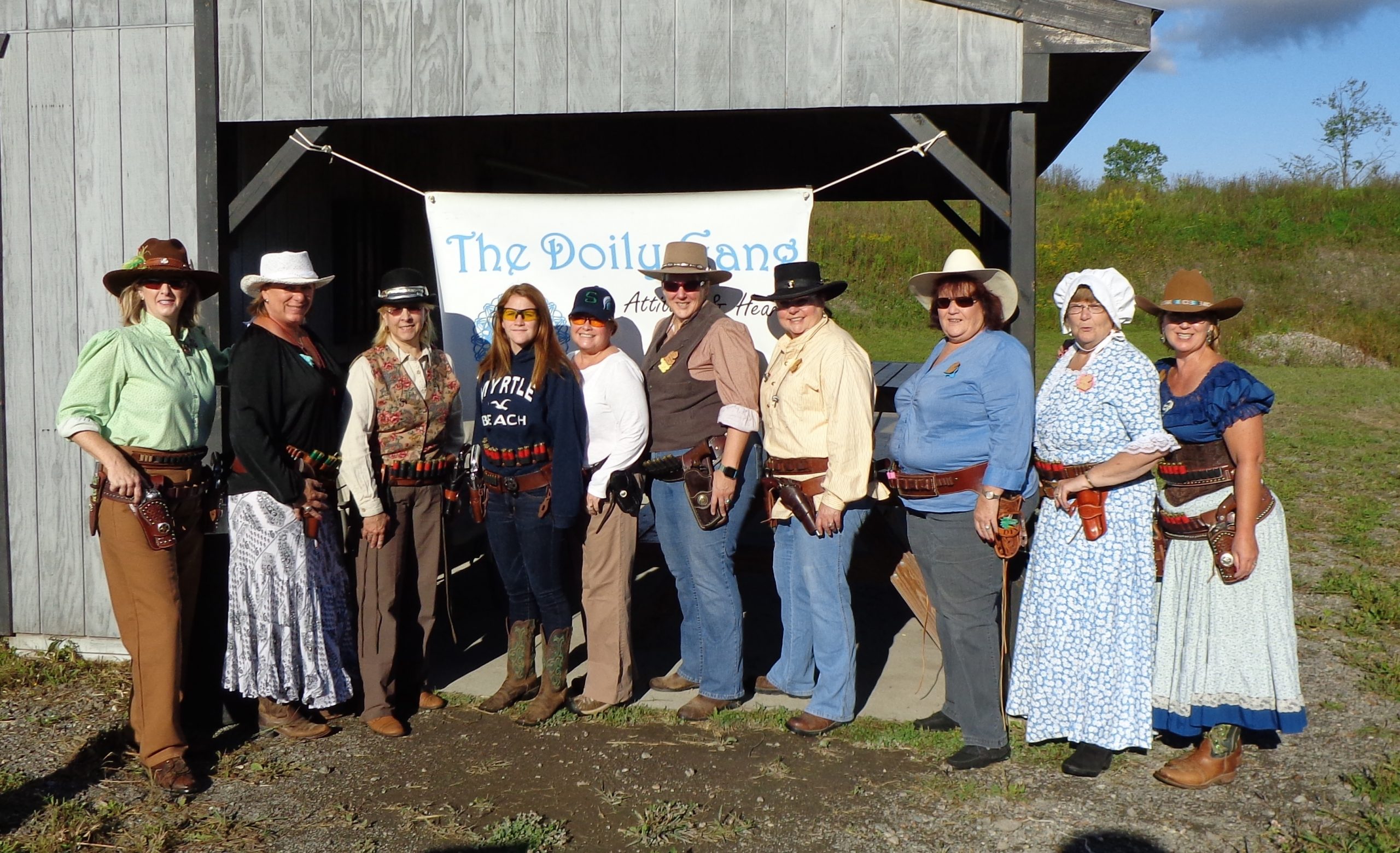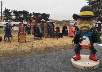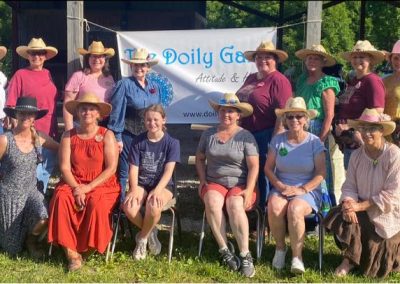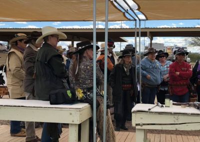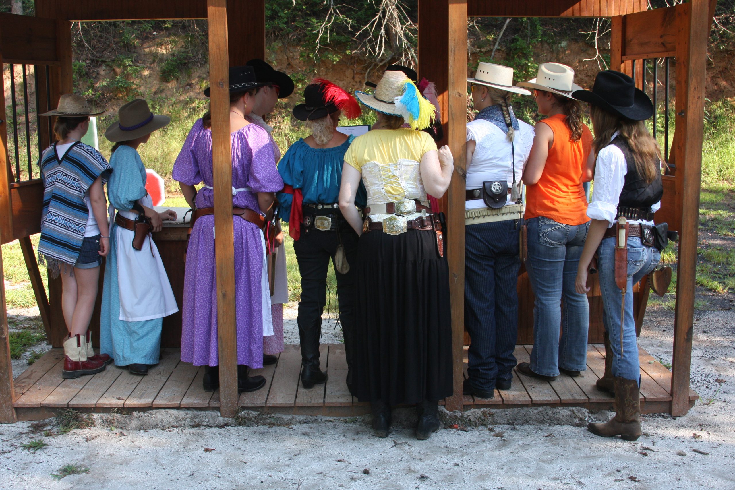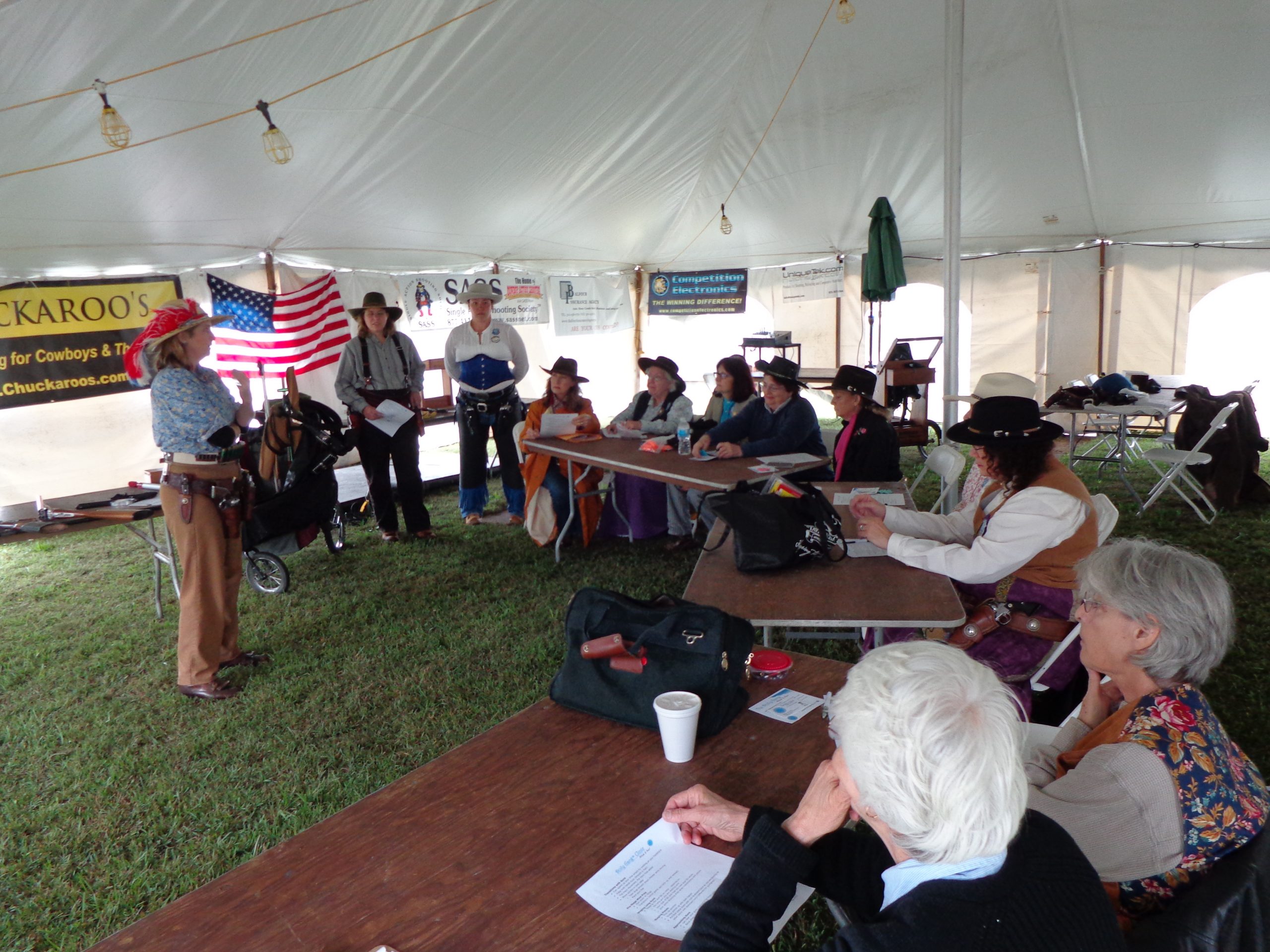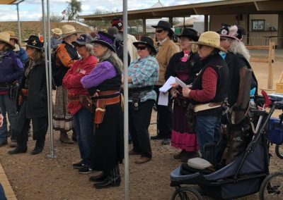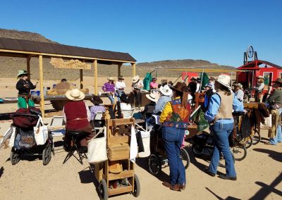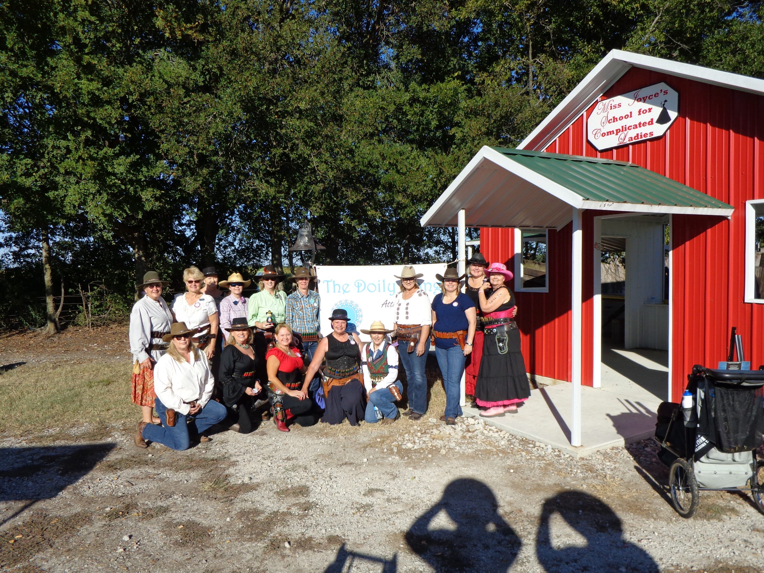 The Doily Gang hosted ladies’ clinics with the purpose of helping cowgirls improve their game. These clinics were not an introduction to Cowboy Action Shooting™, but instructors provided tips and techniques on shooting stance, drawing pistols, levering rifle, loading/shucking the shotgun, staging guns, transitions, practice tips, the mental game, etc.