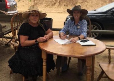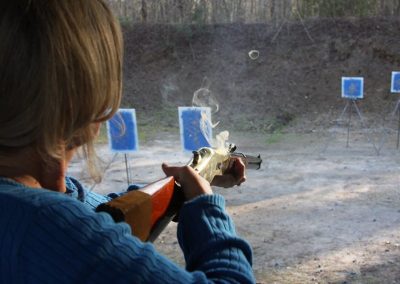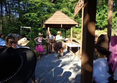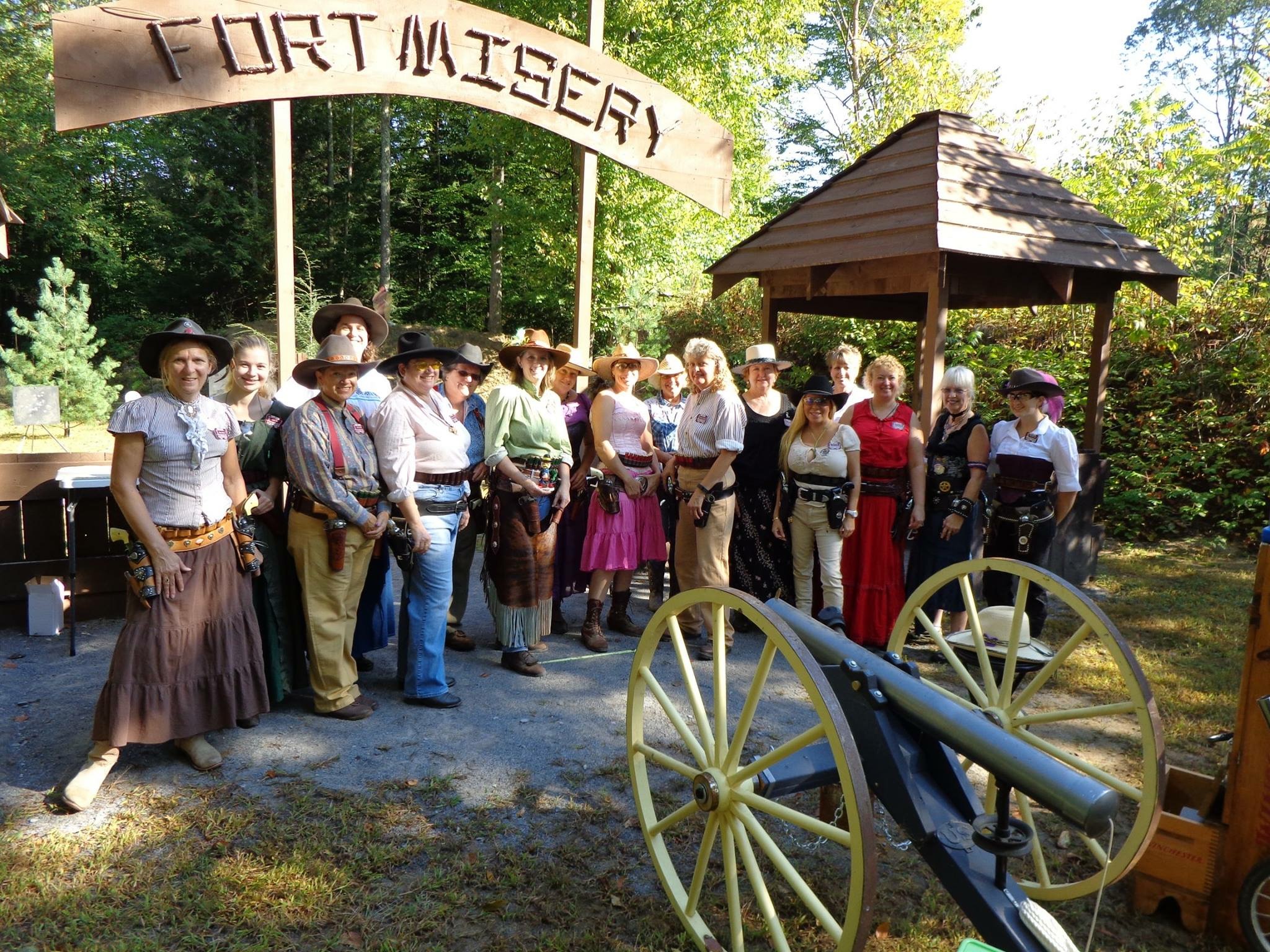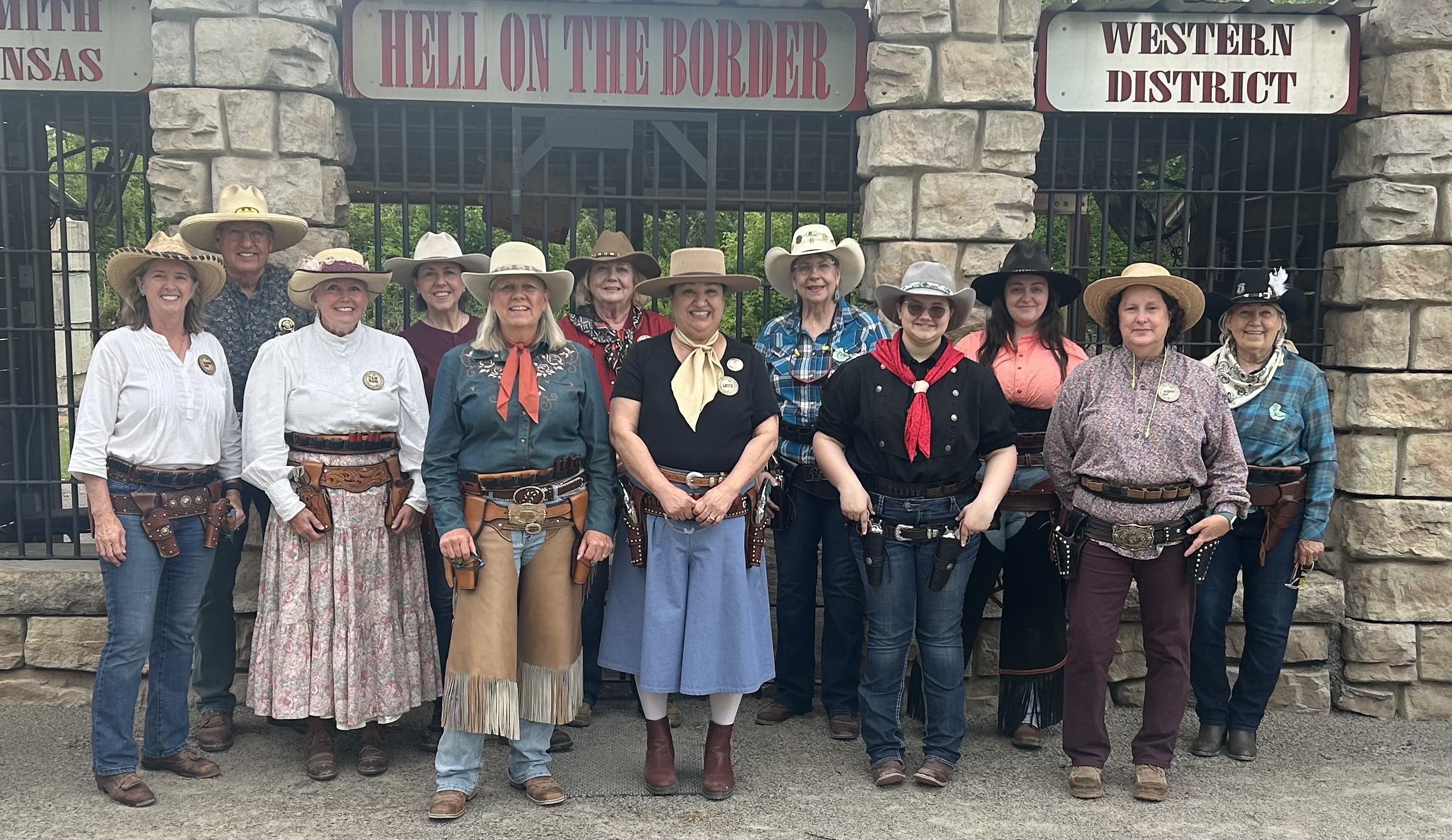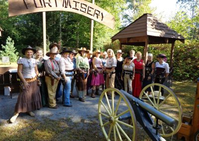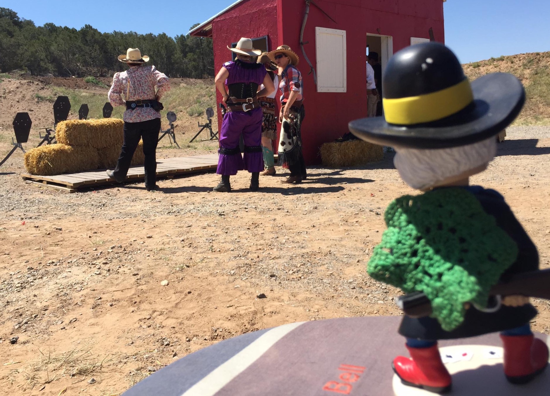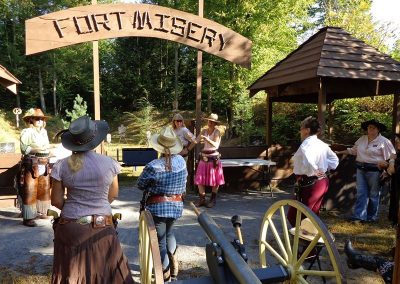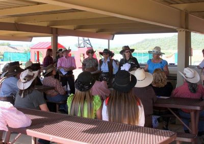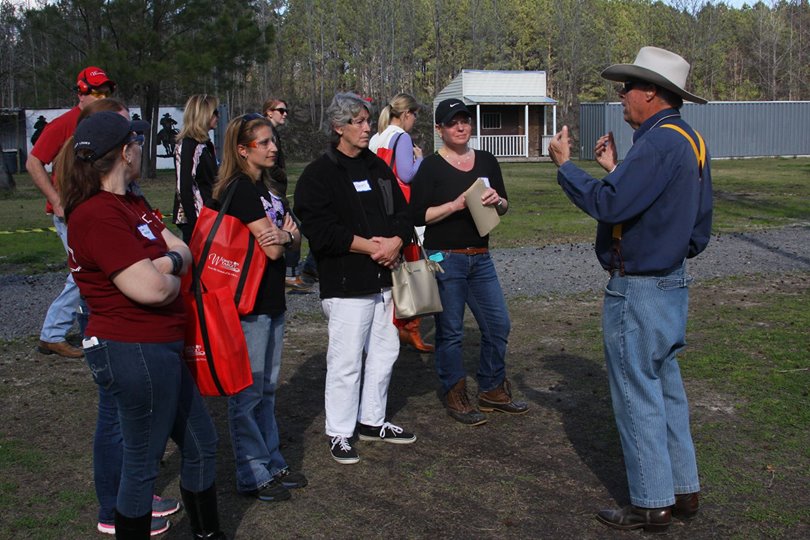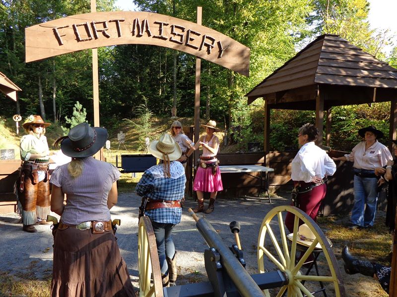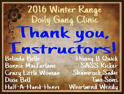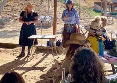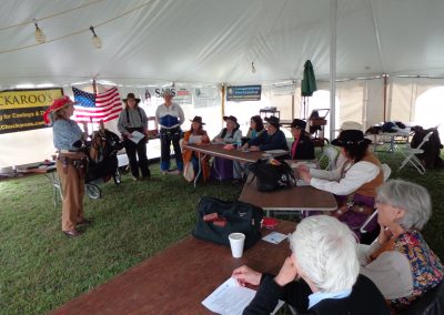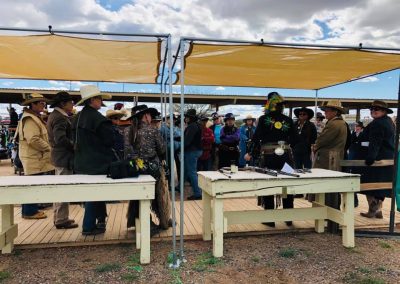 The Doily Gang hosted ladies’ clinics with the purpose of helping cowgirls improve their game. These clinics were not an introduction to Cowboy Action Shooting™, but instructors provided tips and techniques on shooting stance, drawing pistols, levering rifle, loading/shucking the shotgun, staging guns, transitions, practice tips, the mental game, etc.
